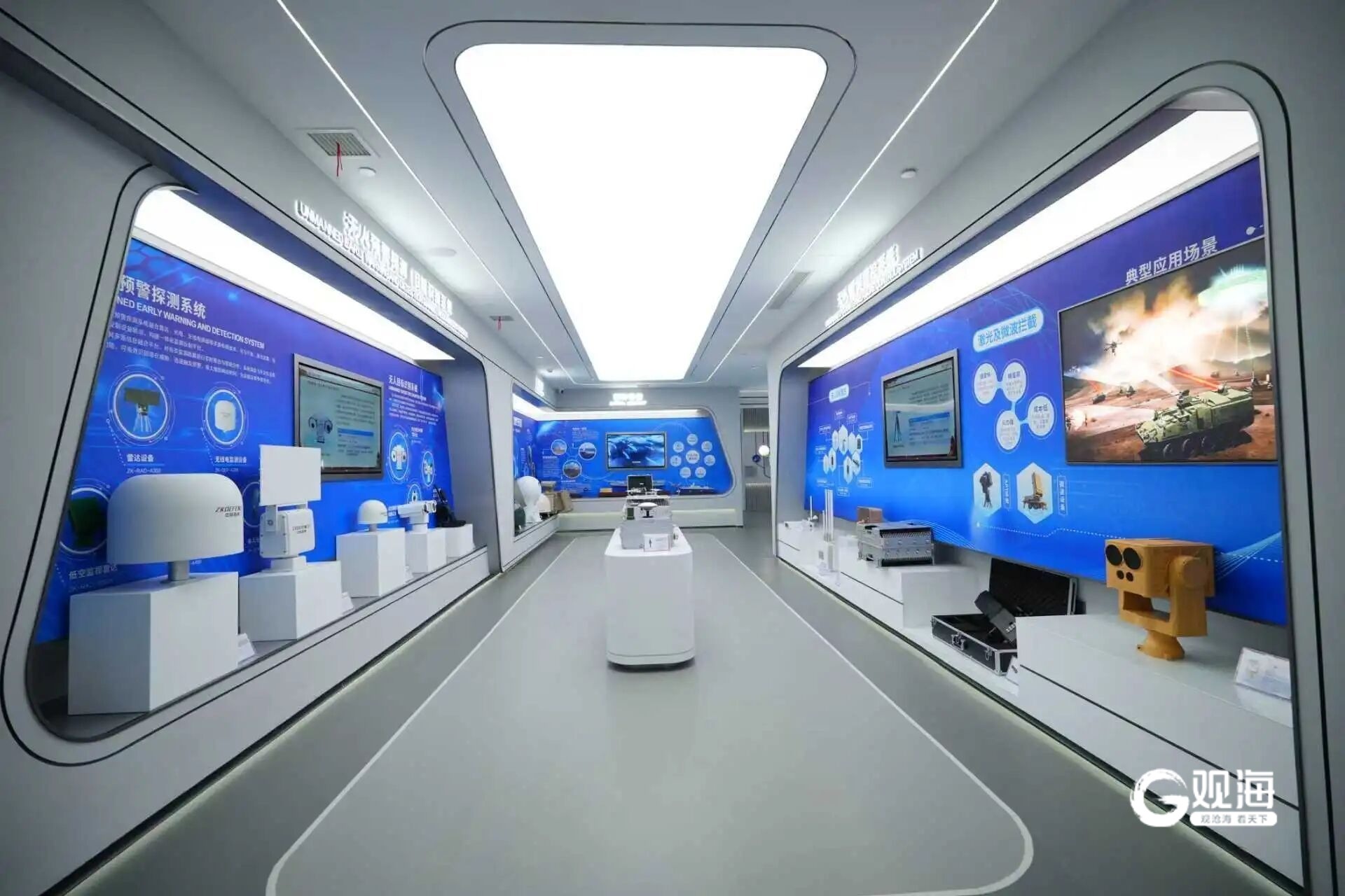 青岛低空安全防御科技展厅打造低空防御科普平台。展厅内,无线电侦测设备、高精度雷达、导航诱骗设备、激光反制设备等前沿装备集中陈列。这些设备共同构建了一套从侦测、识别、预警到反制的全链路、多层次低空安全防护体系,旨在高效应对低空安全威胁,为城市要地、关键基础设施等提供技术保障。