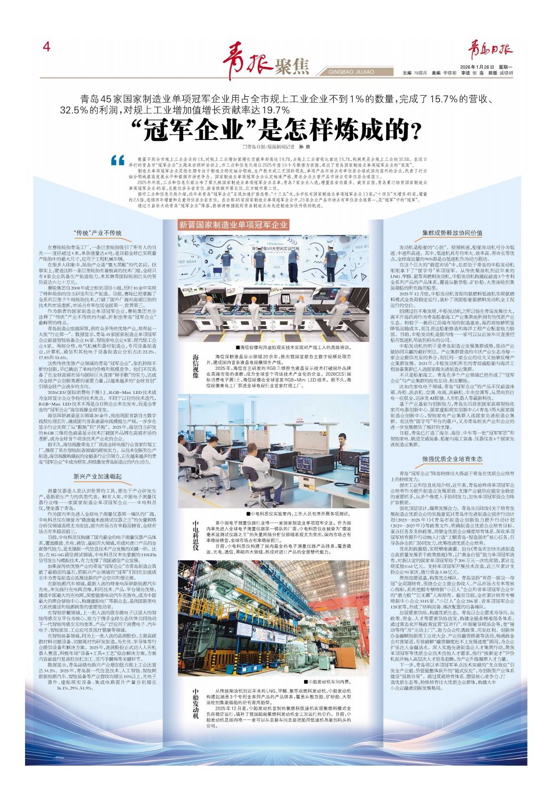 透过日益壮大的青岛“冠军企业”阵容,能够清晰捕捉到青岛制造业向先进制造加快升级的轨迹。